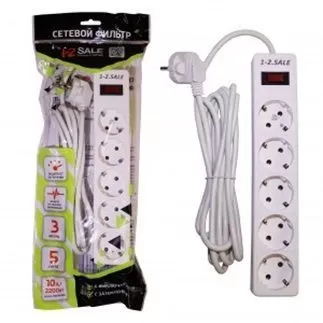 1-2.SALE сетевой фильтр ПВС 3х0.75 5роз. 3м 10А БЕЛЫЙ, земля, выкл. E1М 901417 купить в Костроме по низкой цене с доставкой