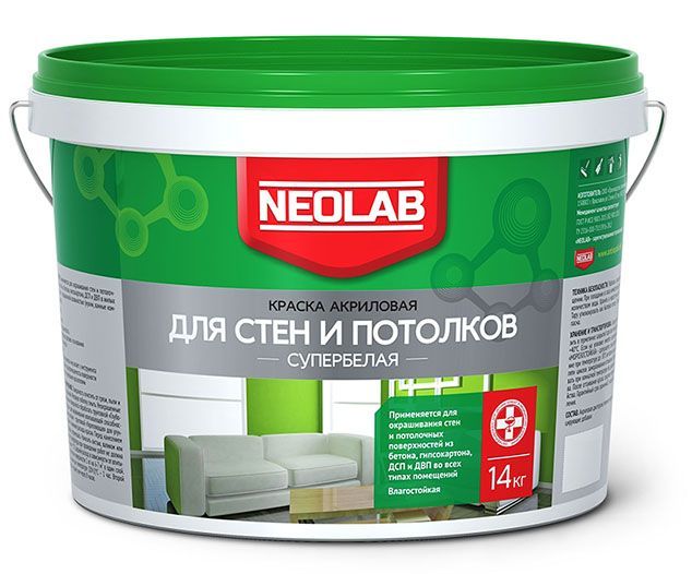 Акриловая супербелая краска ДЛЯ СТЕН И ПОТОЛКОВ влагост. ВД-АК-2180 14 кг (уп.1 шт.) NEOLAB купить в Костроме по низкой цене с доставкой