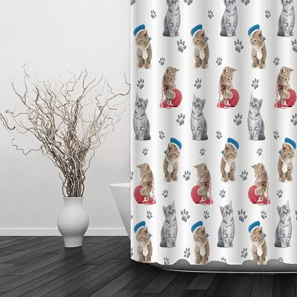 Штора для ванной тканевая белая, котята ВТ-823826 , "Дорофей", 180*180 купить в Костроме по низкой цене с доставкой